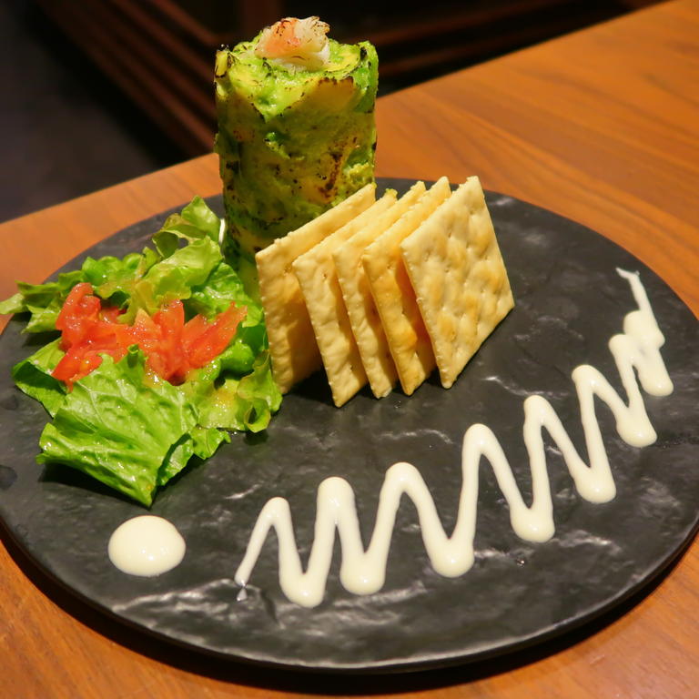 アボカドタワーは表面を炙っていて、根もとはポテサラでした。