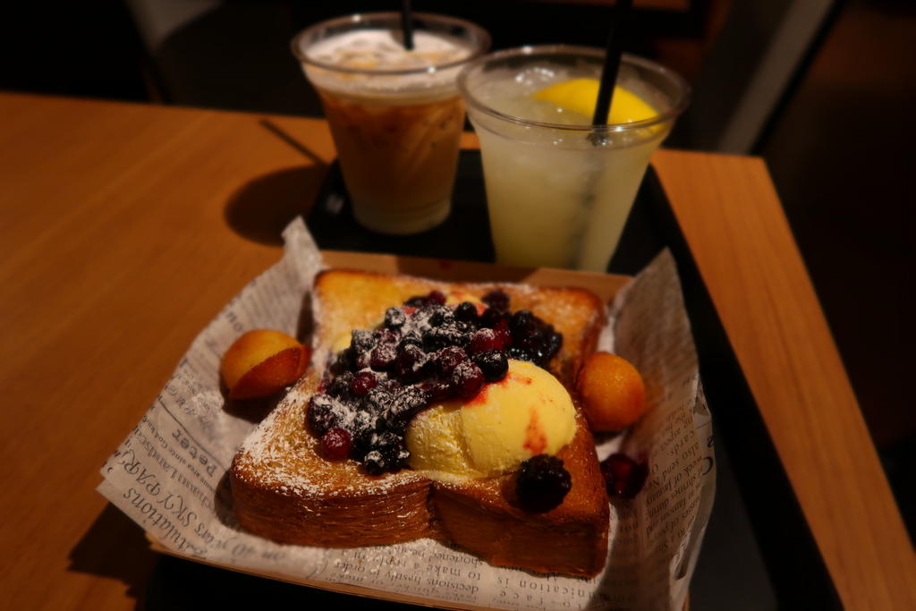 2018年06月01日 フードホールでおやつデニッシュトースト【&COFFEE MAISON KAYSER(アンドコーヒーメゾンカイザー)】 甘い誘惑♡梅田フードホール!もう何度も行っていますが、今回はお茶でも。アンドコーヒーミックスベリーとヴァニラアイス¥580デニッシュをトーストしてあるから耳のあたりがさくっとしていておいしい❣️アイスの味もいい♪自家製レモネード¥350 アイスラテ¥390アイスラテはまあまあ普通。レモネードが酸っぱすぎず、フルーティで美味しい。パンがサービスのプチフィナンシェつき。二人でシェアしたけど、いいおやつになりました♪・UMEDA FOOD HALL全店舗の紹介記事はコチラ★・インスタはこちら アンドコーヒー メゾンカイザー 阪急三番街店 < 前の記事次の記事 >