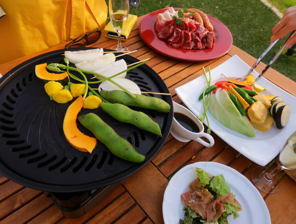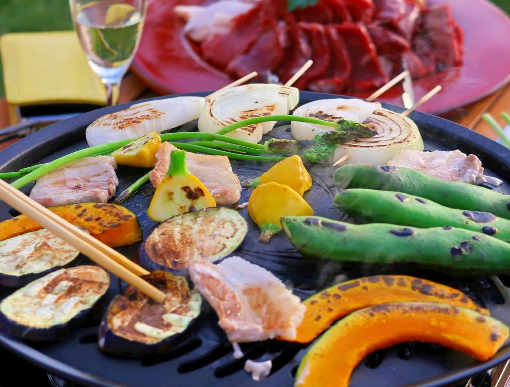 屋外BBQだから、煙も気にせずじゅーじゅー焼ける。