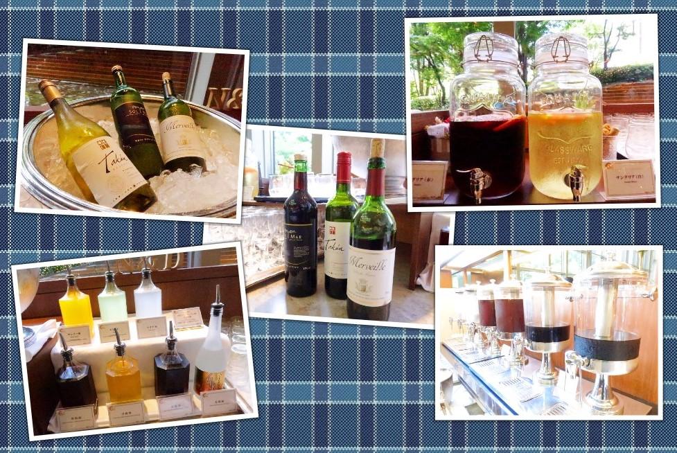 赤白ワインが3種類ずつ。サングリアにカクテル。コーヒー、紅茶、ソフトドリンクつき。