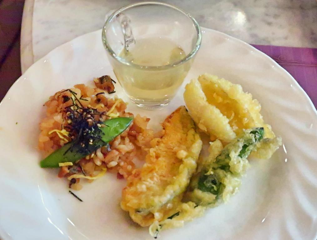 天茶っぽくしていただきました。天ぷらの衣がサクサク。天つゆのほか、抹茶塩など、塩が3種類。