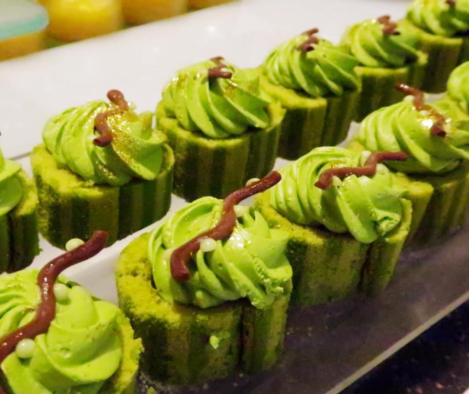 緑色のテーマに合わせて、抹茶、メロン、ピスタチオを使った約15のスイーツが登場。