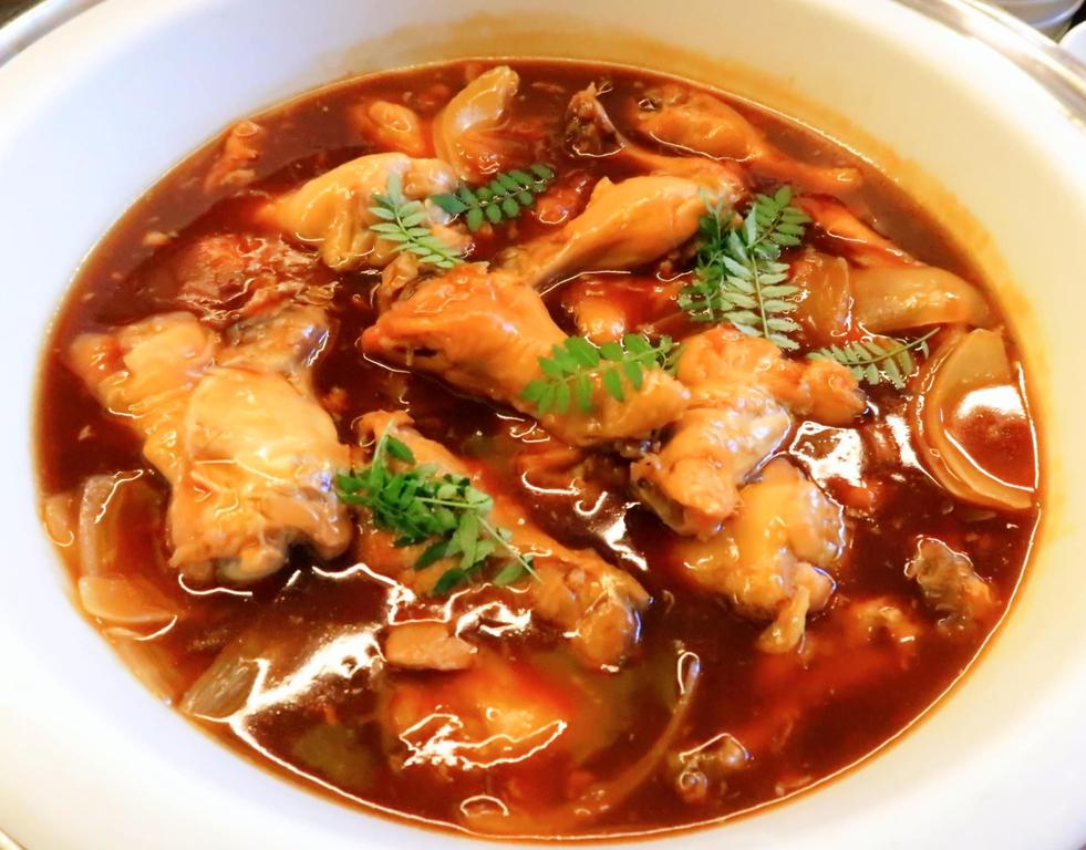 ・骨付きチキンのロースト ソーススタンリー アーモンド入りバターライス添え