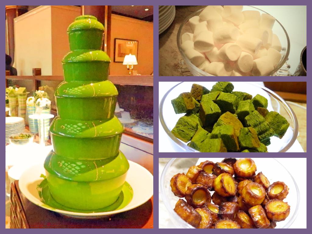カヌレやマシュマロで抹茶チョコフォンデュ。