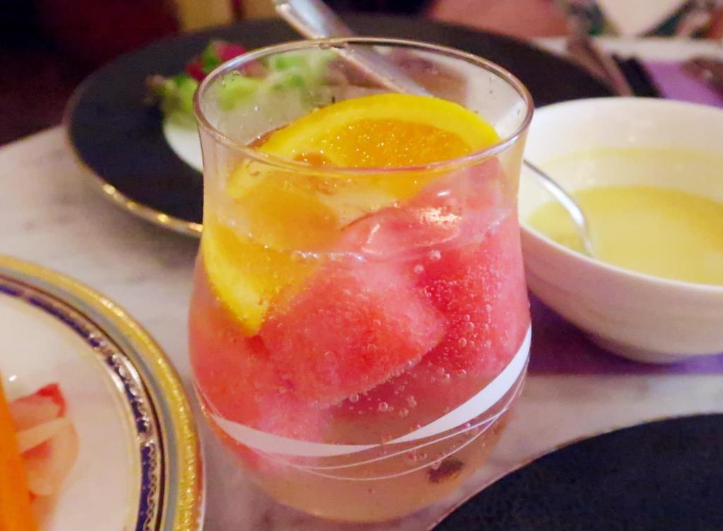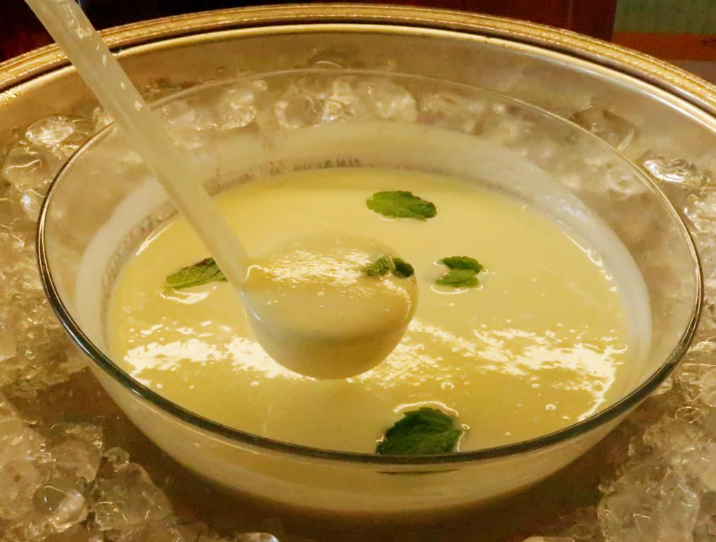 桃のスープは桃の風味でほんのり甘く、冷たく冷やしてあって、まさに初夏のスープ♡