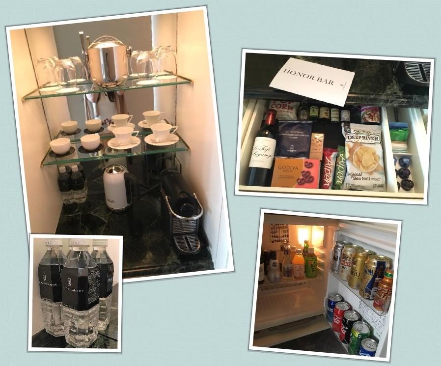リッツのお水、バー、冷蔵庫。