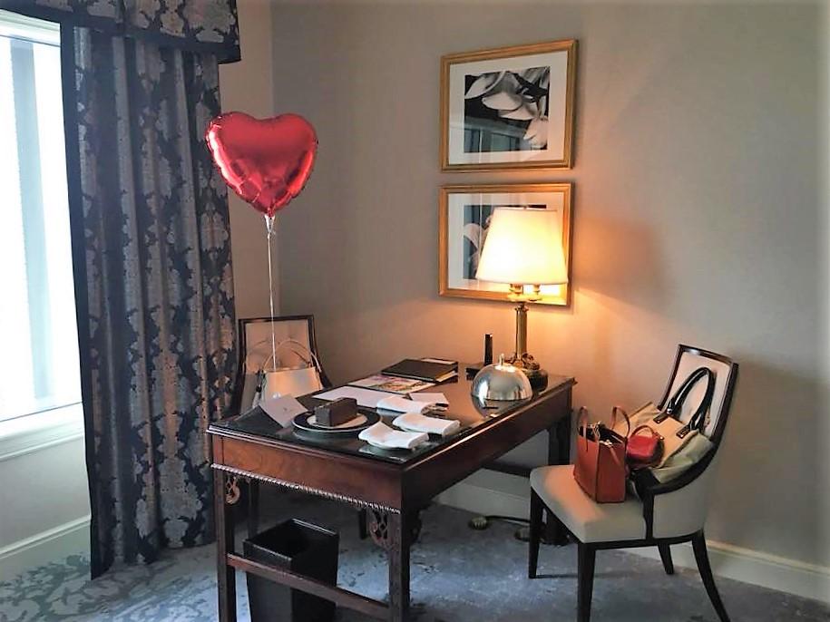 お祝いのバルーンとケーキ、カードがデスクにあって感激☆