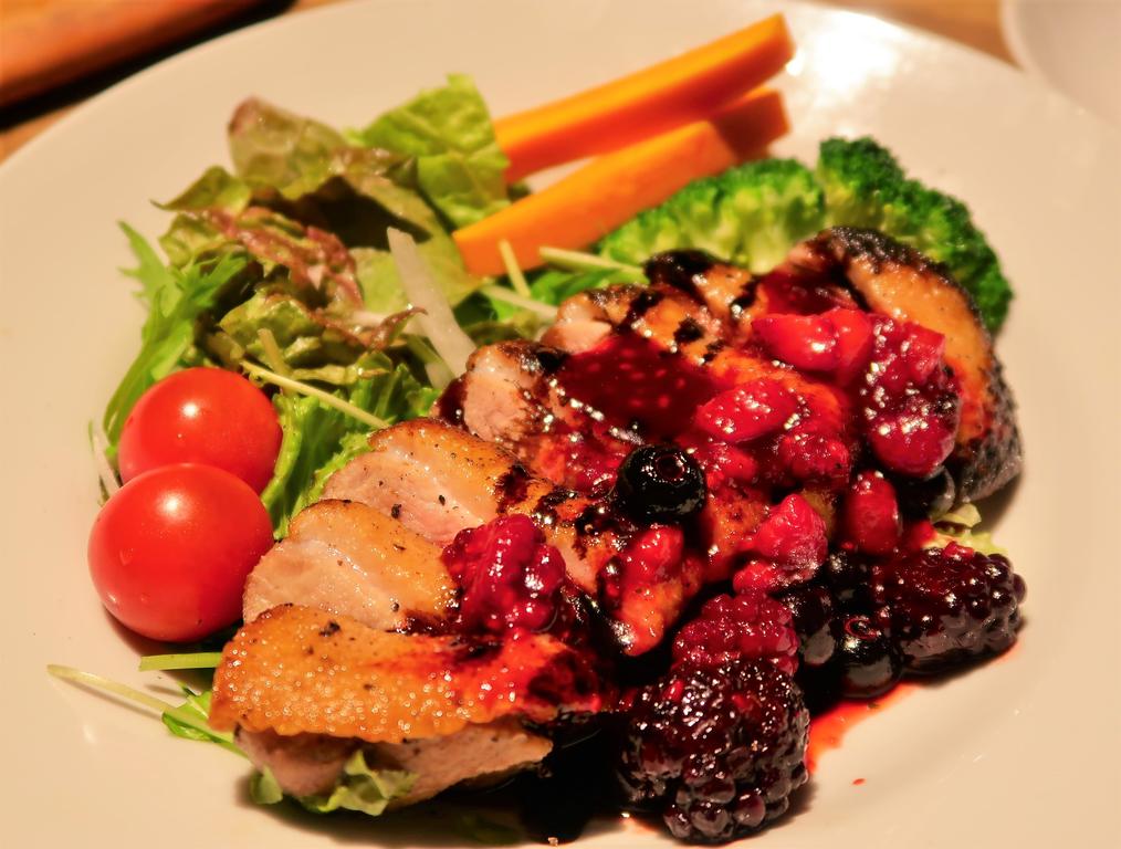 ベリーがごろごろ。甘いソース。けっこうしっかり焼き。