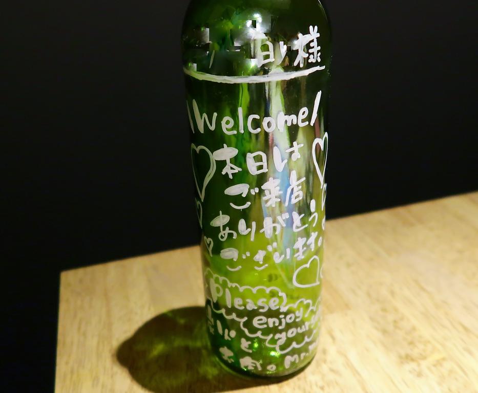 個室に案内していただくと、ボトルにメッセージが!