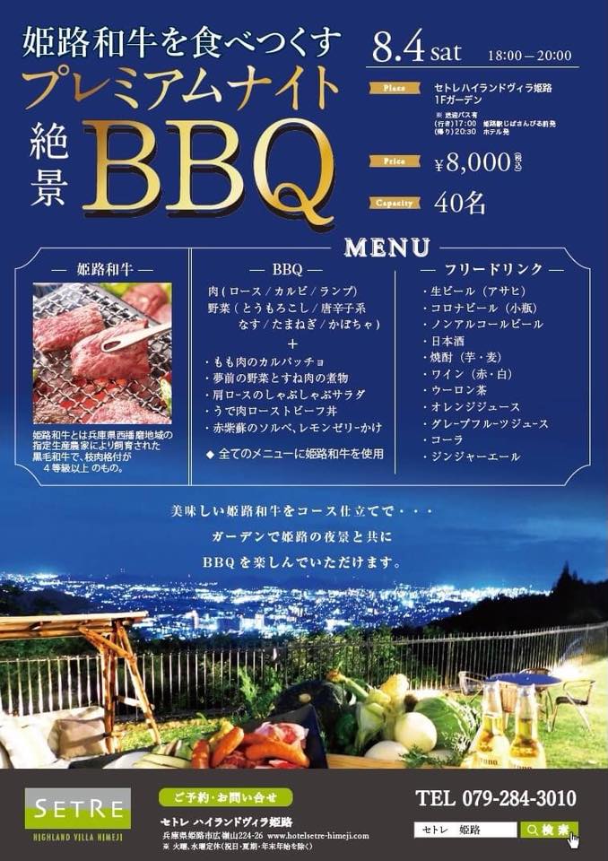 ■内容: 今回は、かねてよりパートナー農家として美味しいお野菜やお米を提供いただいている夢前夢工房の代表衣笠氏や姫路で精肉店を営む石井精肉店の石井氏をお迎えして、夢前で採れた新鮮な野菜や品格のある味わいを楽しめる姫路産和牛をご提供いただきます。知っているようで、実はよく知らなかった野菜やお肉のこと、産地のこと、環境のことを教えていただきながらコース仕立てのバーベキューをお楽しみいただけます。播磨地方を一望できるガーデンで、夜景を満喫いただきながらバーベキューと共に播磨地域・夢前町の美味しい恵みを五感で感じて下さい。