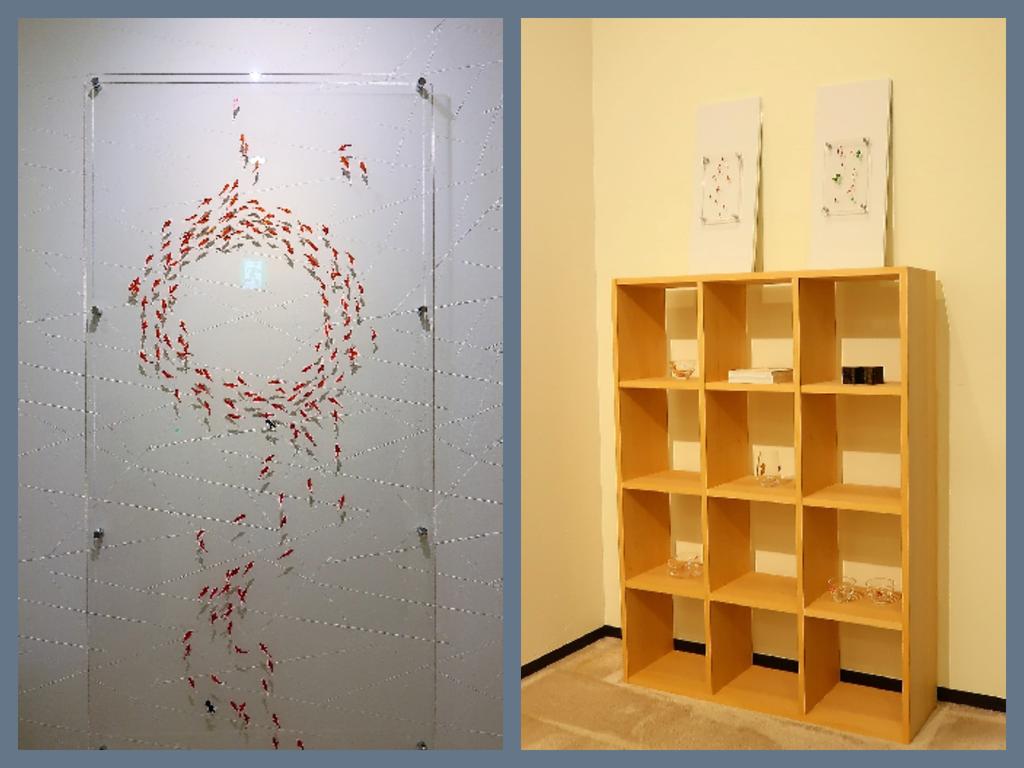 ドアを開けると、姫路の漆(うるし)職人さんのアートがお出迎え。
