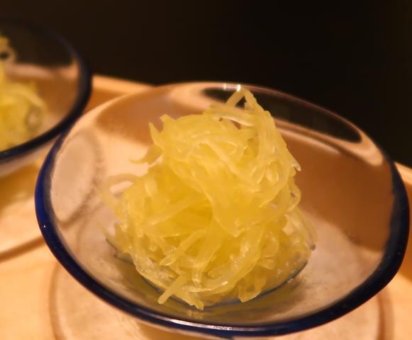 湯引きみたいに水っぽくならないように、油にくぐらせる。