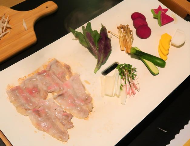 焼き野菜は、白舞茸、ブラウンえのき、黒鮑茸、赤ビーツ、ミニズッキーニ、ホワイトアスパラガス、コリンキー、カブ、紅芯大根、金時草、ごぼう。