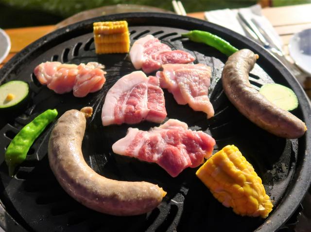 分厚い豚、チキン、太いソーセージ。どれも美味しかった~!