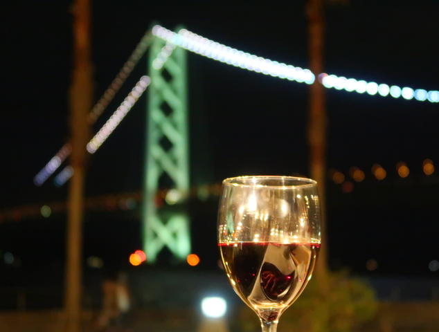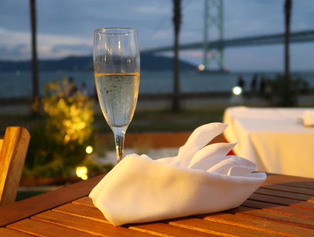 明石海峡大橋が刻々とライトの色を変え、涼しい海風が吹く中のBBQ。