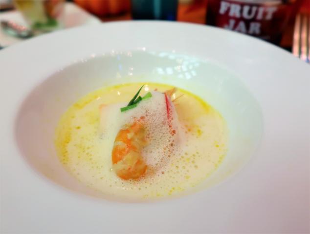 ・サーモンと海老のポシェ ジュー・ド・コキヤージュのエミュルション