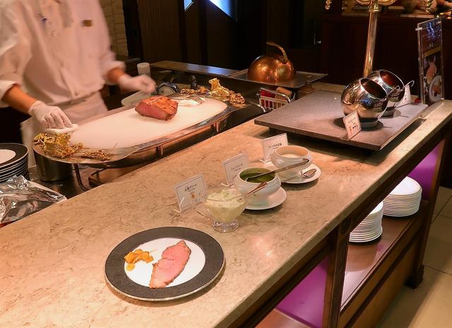 ディナーでは「ローストビーフのカッティングサービス」もいただけます。いろいろなソースが用意されていましたよ。