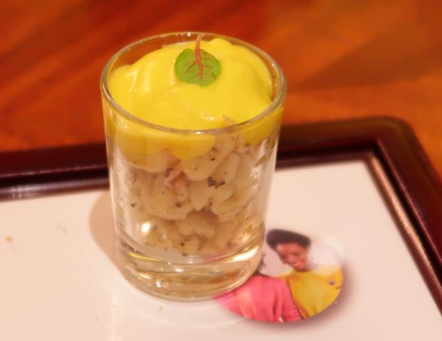 トリュフの香りにうっとり~(≧▽≦) お米のようなパスタでした。コーンクリームの色は、絵のお洋服のイメージ。