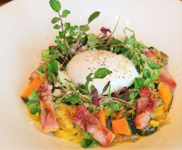パンプキンとパンチェッタのクリームパスタ カルボナーラ風 クレソンの香り ¥2500