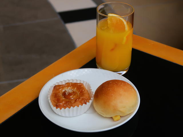 オレンジジュースといただきました。