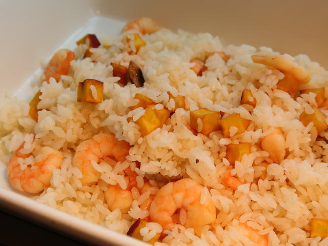 国産米使用の、シュリンプ、サツマイモとマッシュルームのピラフもホテルの味。