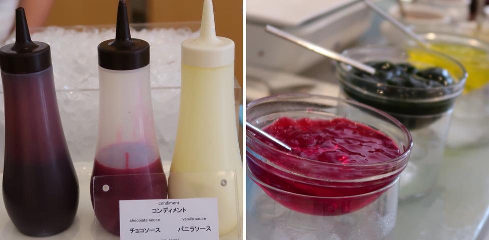 3種類のソースと、3種類のゼリー、そしてトッピングをチョイスしてこんな感じ。