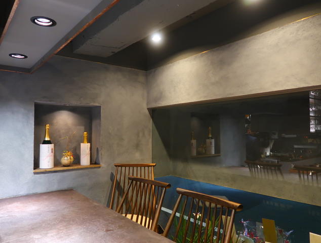 オーナーシェフの故郷、淡路島の土などを使って作られた落ち着く内装です。