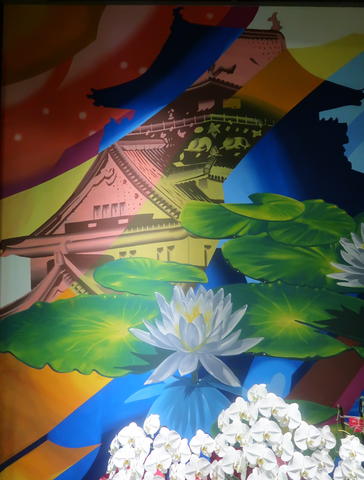 入口の壁画は、大阪城をモチーフにしたもの。