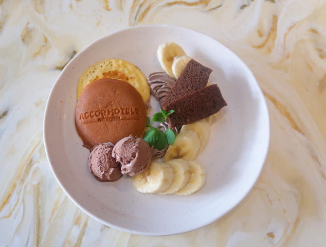 バナナ、ブラウニー、チョコアイス、チョコクリームそえ。