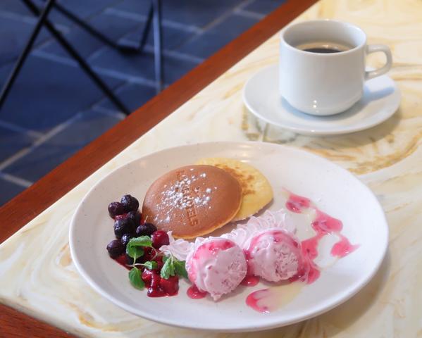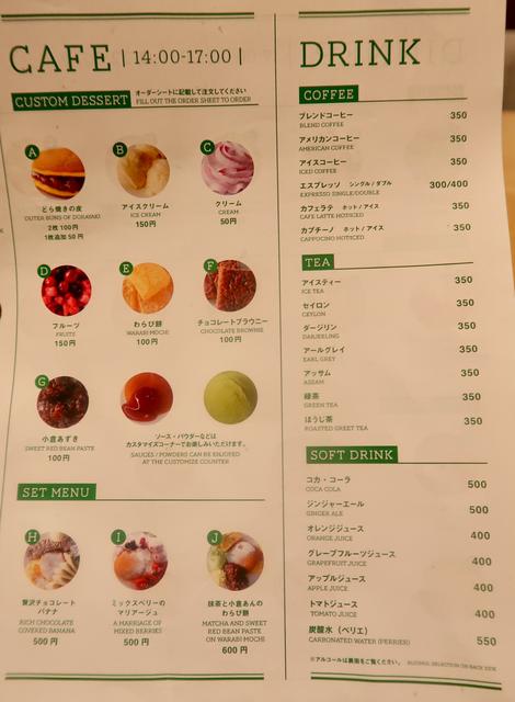 どら焼きの皮、2枚¥100に、アイスやフルーツなどを追加していくカスタムデザートが食べられます。