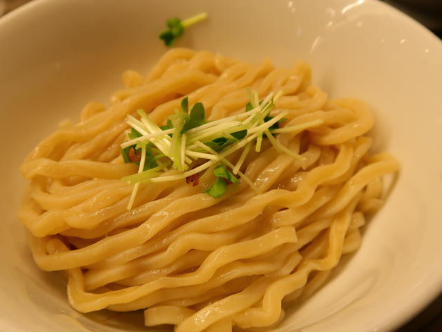 スープは豚骨、鶏ガラ、煮干し、かつお節、サバ節を凝縮させたものだそうで、ざらざらとした魚のだしと動物性のこってりとした旨みを兼ね備えていて美味しい!