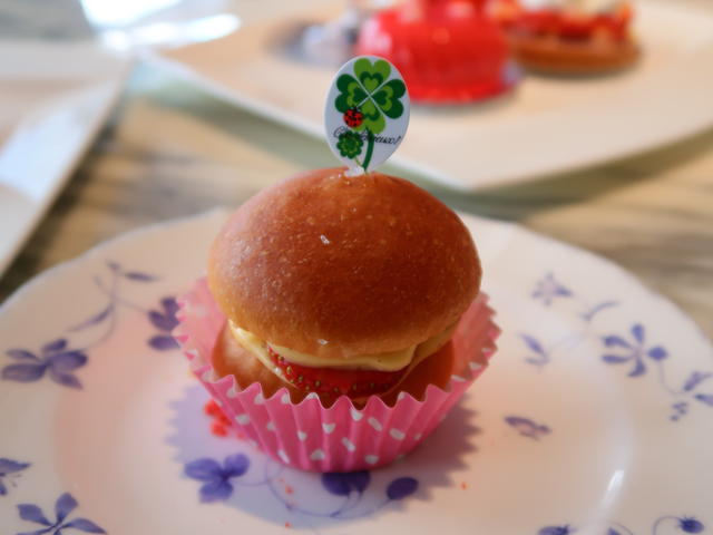 ハンバーガーに見えるけれど、よく見ると苺とカスタードクリームをサンドしたブリオッシュです。