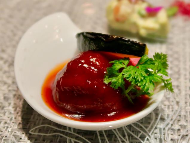 柔らかでトロッとした海老芋のお団子が、まろやかな甘酢のタレに絡まっていて美味しい。