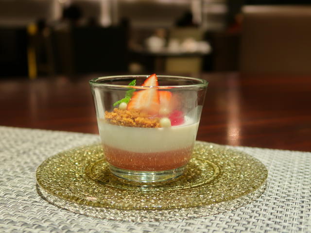 甘酸っぱい苺のゼリーと、苺と杏仁のプリン、サクサクのクランブル。