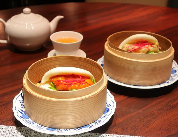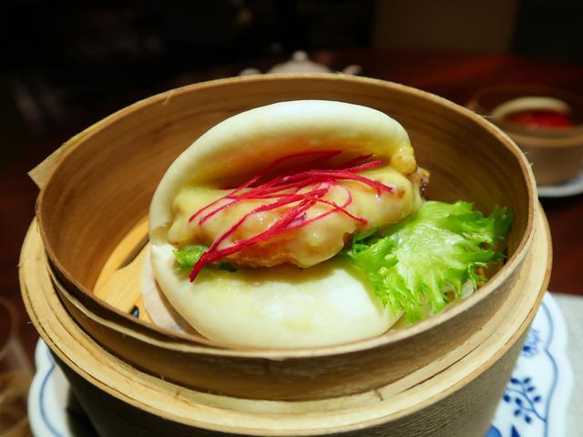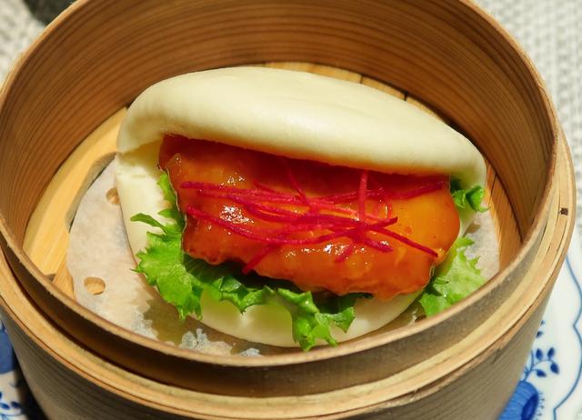 ふかふか蒸したての中国パンでバーガー風にサンドしてあって可愛い♪