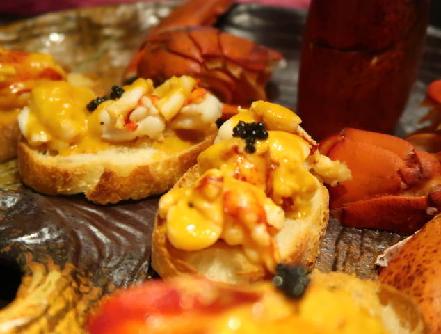 バゲットの上にオマール海老、アメリケーヌソースをとろっとたっぷりかけて、キャビアのせ。