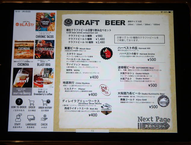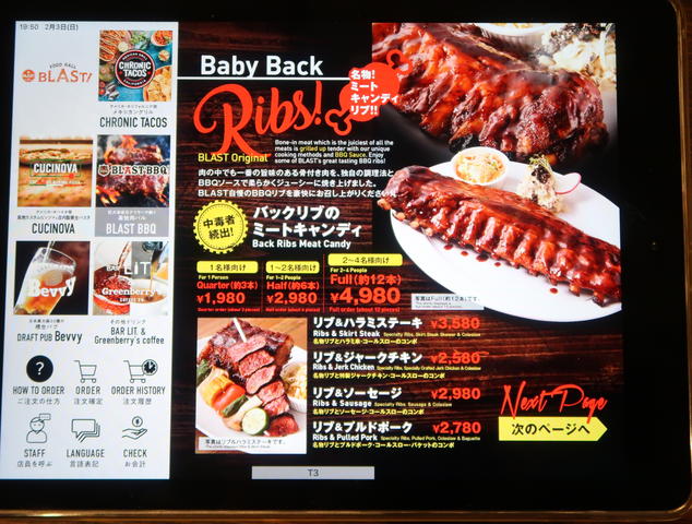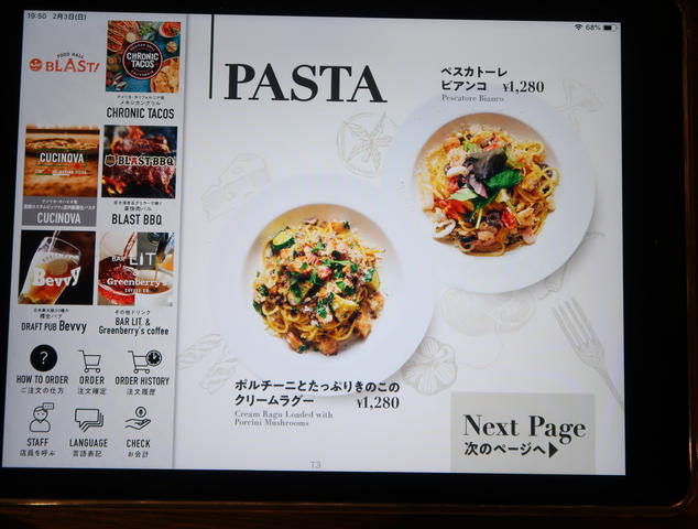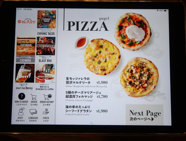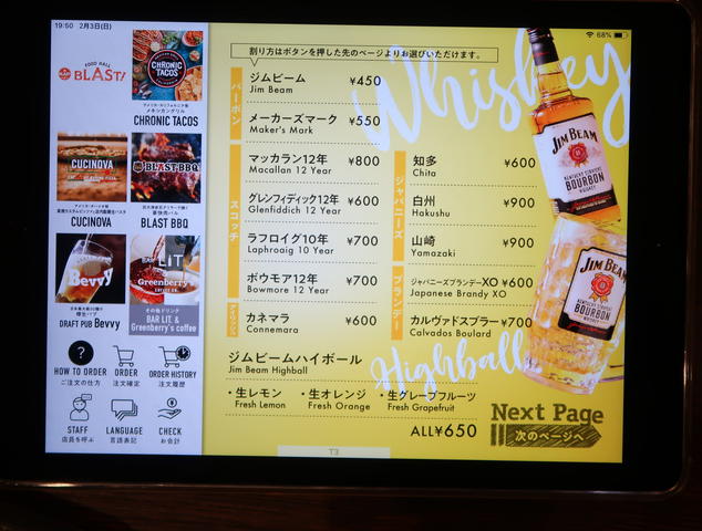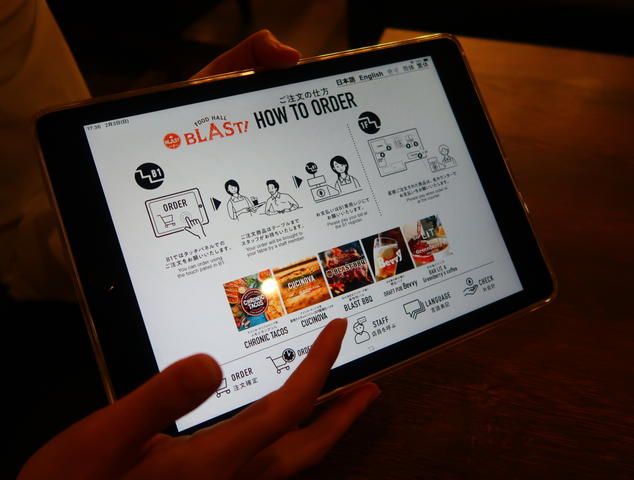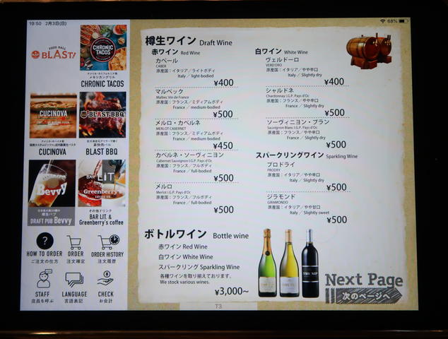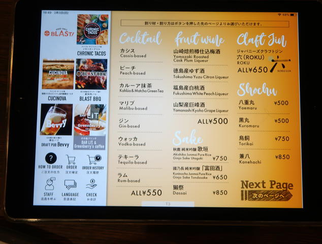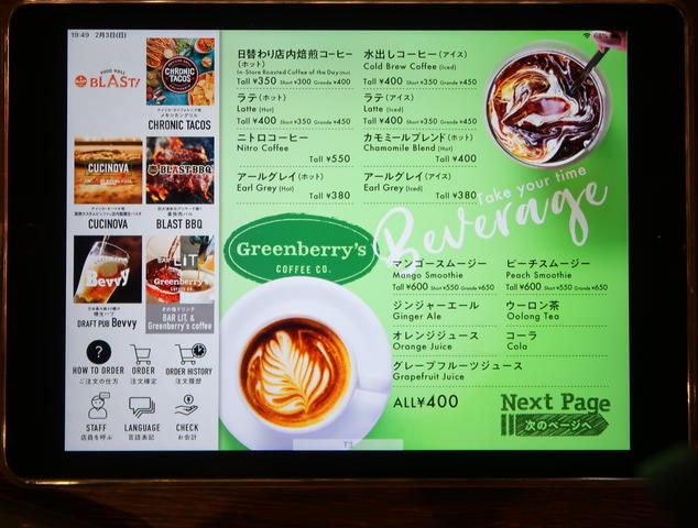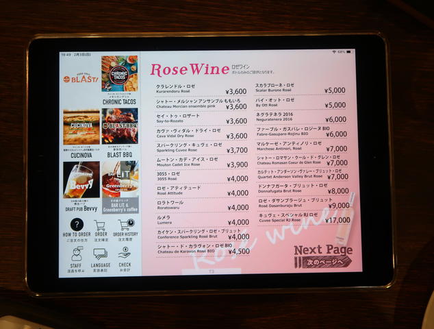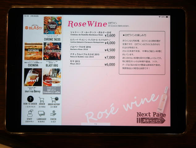 フードメニューはiPadで、なんと1Fのお店から出前形式でいただけます。