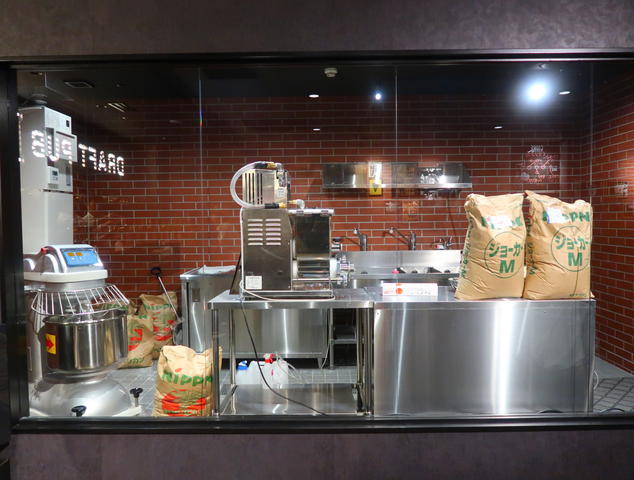 ピッツァの生地は地下で作られています。