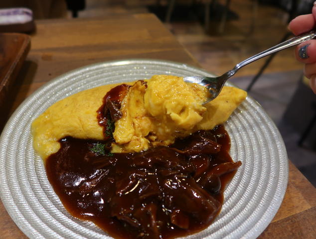 チーズ入りのふわふわオムレツに、たっぷりのきのこデミグラスソース。