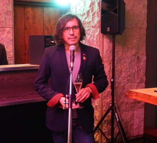 FM802 DJの野村雅夫さんの乾杯のあいさつはもちろん「サルーテ!」。