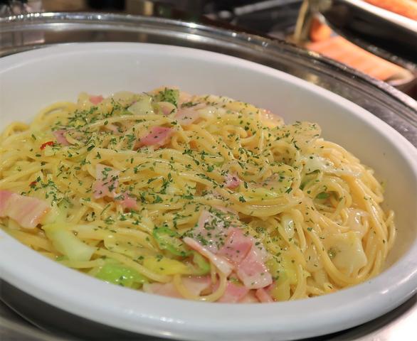 ベーコンとキャベツの春っぽいパスタ。
