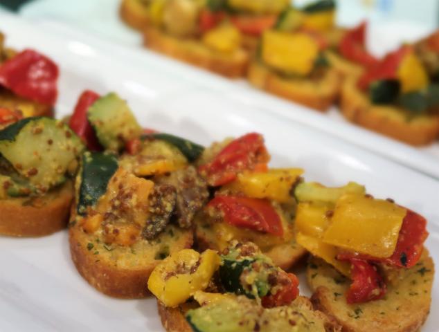 グリル野菜をバゲットのラスクにのせたもの。