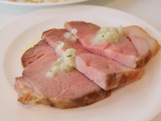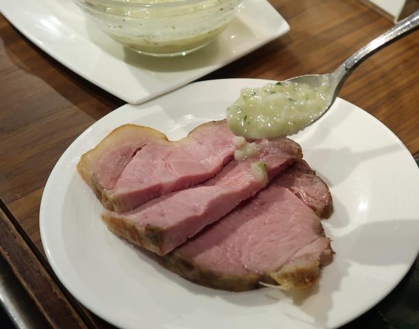たっぷりとお野菜を食べた後、メインのローストポークをいただきました。