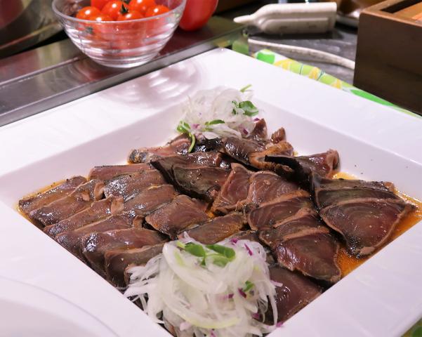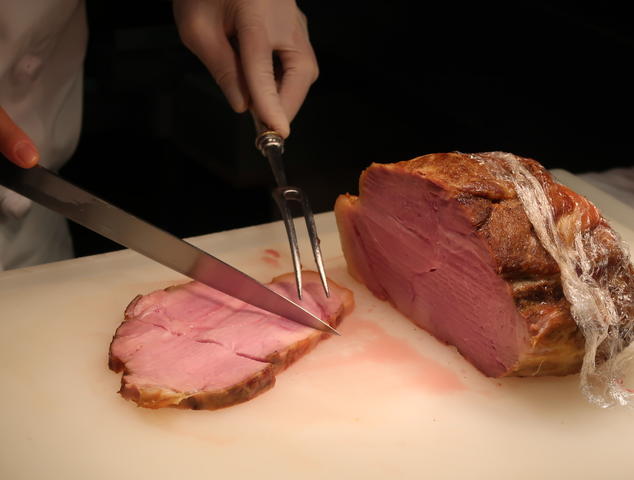 塊肉を目の前でカットしてくれます。