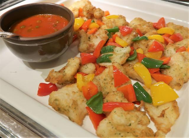 それに野菜のヴィネグレットソースをかけると、シャキシャキとした食感とともに、さっぱりといただけました。塩をあったのでお好みで。