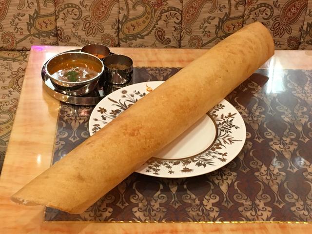 南インド料理で特徴的なものがこちら、ドーサ。