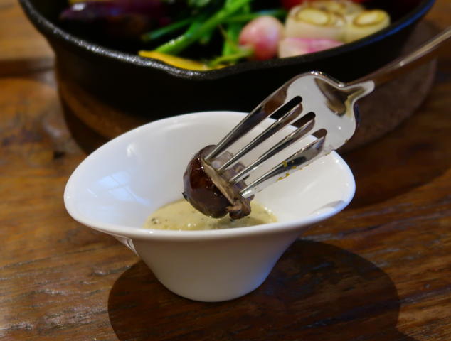 アンチョビのコクと旨みがクリーミーなバーニャ風のディップは、何をつけても美味しい。