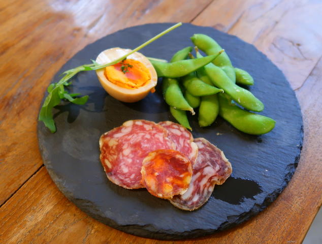 イタリア産サラミ3種、ゆで卵、枝豆をチョイス。