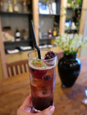 フランス生まれのフルーツリキュール「ルジェ」を使ったカクテルが4種類あり、こちらはそのチェリー味にを炭酸で割ったもの。