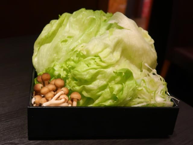野菜は、レタス丸ごと1個分と、白ネギ、しめじとシンプル。